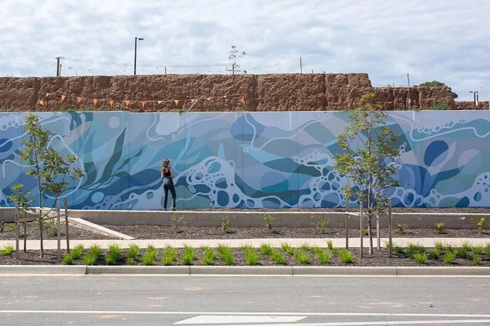 A recently completed mural at Seacliff Village (Seacliff Park, South Australia) Photo by Stephanie Rose of Muse Haus Studio.